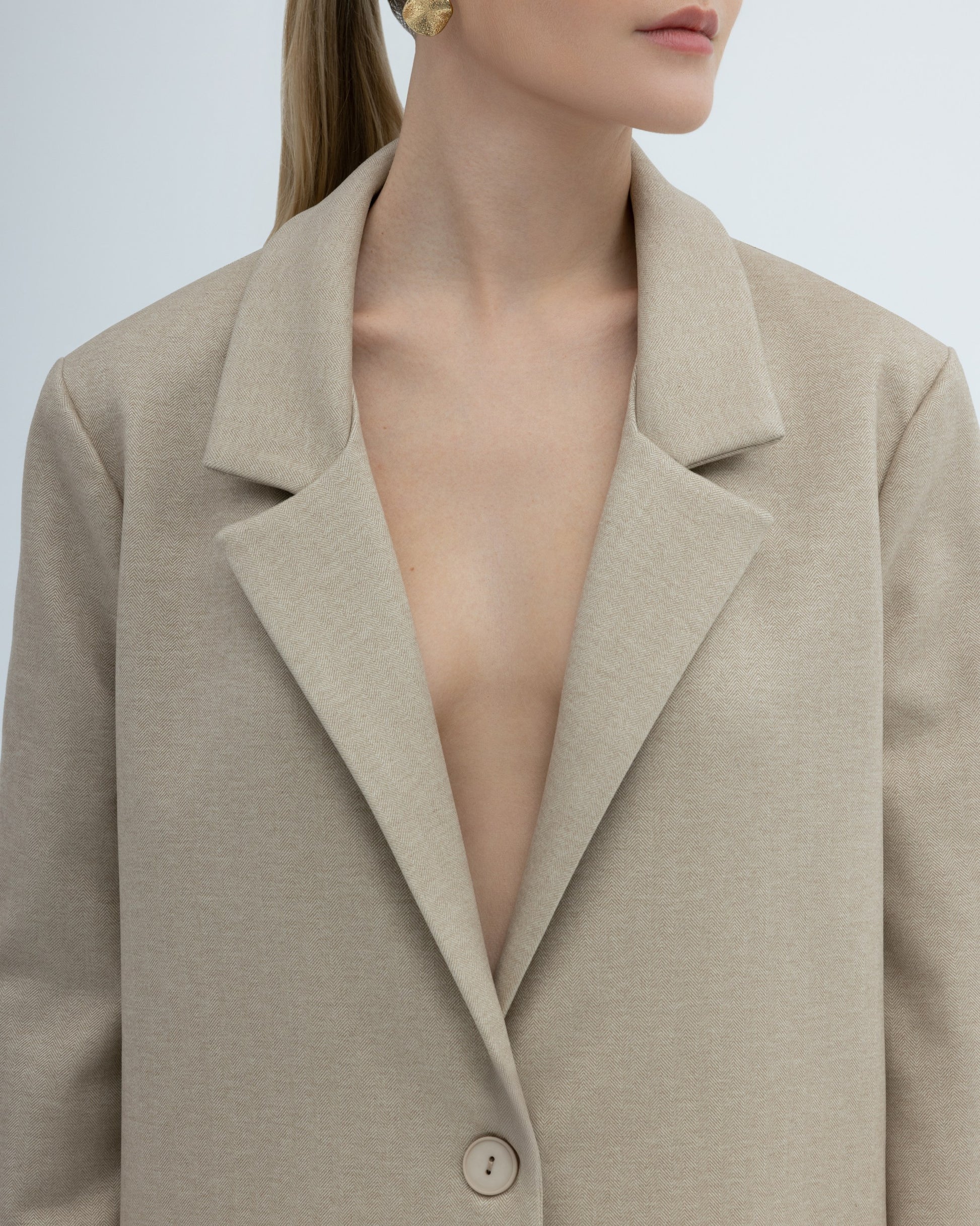 • Blazer: oversized fit, lined, single-button closure, classic lapels